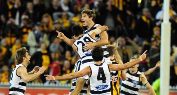 The Cats again won by two points, but this time it was thanks to a Tom Hawkins goal after the siren.